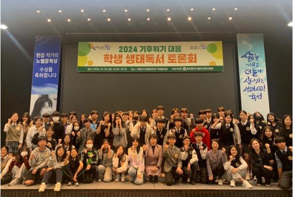 [중앙뉴스라인, 손기주기자] 광주동부교육지원청은 지난 25일 국립아시아문화전당에서 관내 중학교 재학생과 지도교사 등 100여 명이 참여한 가운데 ‘2024 기후위기 대응 학생 생태독서 토론회’를 개최했다.