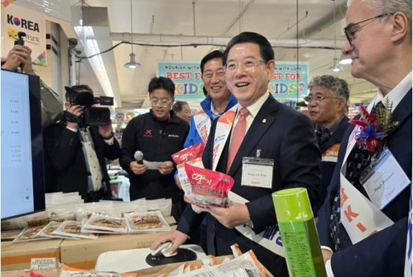 미국을 방문 중인 김영록 전라남도지사는 26일(현지시간) 미국 뉴저지 H-마트 리지필드점에서 열린 H-마트 온라인몰 전남식품관 개설 기념행사 및 전남 농수산식품 판촉전에 참석했다.