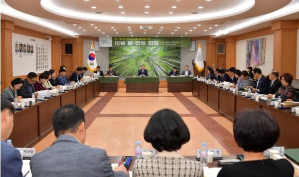 [중앙뉴스라인, 김민수기자] 담양군은 지난 29일 담양군청 면앙정실에서 이병노 군수 주재로 간부공무원 및 읍면장이 참석한 가운데 주요 현안 사항 논의를 위한 10월 읍면장회의를 개최했다.