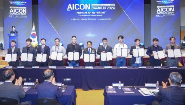 광주광역시는 30일 광주과학기술원에서 열린 세계적 인공지능(AI) 학술대회인 ‘아이콘(AICON) 광주 2024’ 개막식에서 ㈜레이메드, ㈜리오랩, ㈜메디인테크, ㈜멜로우컴퍼니, ㈜스타키움, ㈜엘비에스테크, ㈜온누리아이코리아, ㈜와우키키, ㈜인사이트베슬, ㈜프롭메이트 등 10개 인공지능(AI) 기업들과 224~233번째 업무협약을 체결했다.
