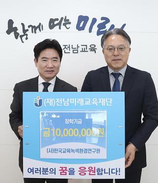 [중앙뉴스라인, 김민수기자] 사단법인 한국교육녹색환경연구원은 30일 전남미래교육재단에 장학금 1천만원을 기탁했다.