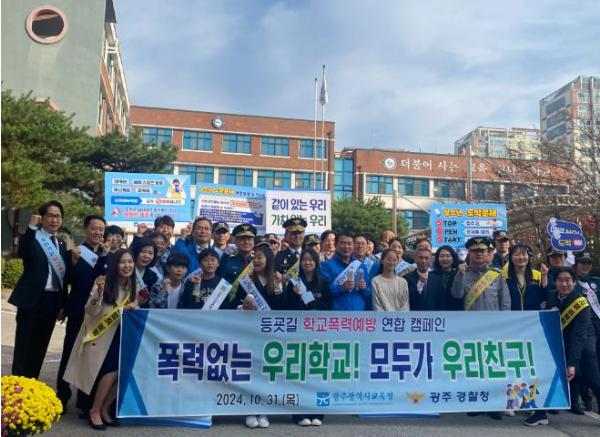 [중앙뉴스라인, 손기주기자] 광주시교육청은 31일 광주경찰청과 함께 서구 만호초등학교 정문에서 ‘학생·학부모·교직원 및 지역사회가 참여하는 학교폭력 예방 캠페인’을 실시했다.