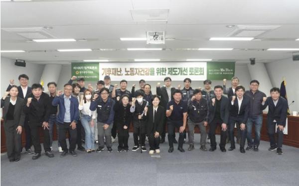 최지현 광주시의원(더불어민주당, 광산1)은 31일 시의회 예산결산특별위원회실에서 ‘기후재난 및 노동자 건강을 위한 제도개선 토론회’를 개최했다.