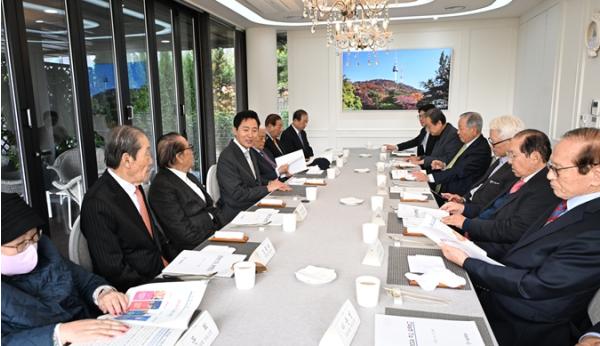 [중앙뉴스라인, 김민수기자] 오세훈 서울시장은 4일 파트너스하우스에서 국민의힘 상임고문단과 오찬 간담회를 갖고 서울시의 미래 발전 방안과 여당의 역할 등에 대해 의견을 나눴다.