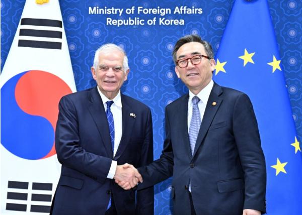[중앙뉴스라인, 신기철기자] 조태열 외교장관은 '조셉 보렐(Josep Borrell)' 유럽연합(EU) 외교안보정책 고위대표와 11월 4일 제1차 한-EU 전략대화를 개최하고, ?한- EU 관계 ?러북협력 및 한반도 정세 ?지역·국제정세 등을 논의했다.