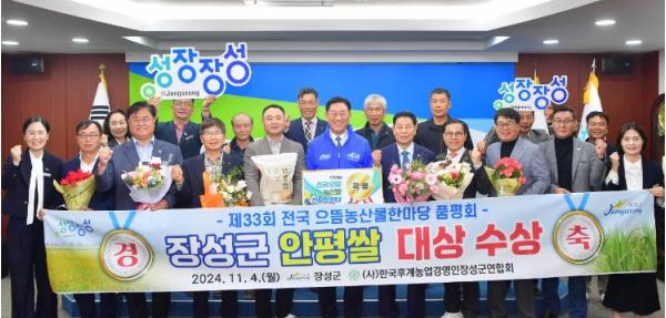 [중앙뉴스라인, 김민수기자] 장성군이 전남 최초로 재배한 안평쌀이 전국 최고 품질을 인정받았다.