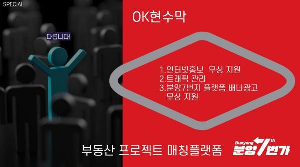 분양 상담사들에게 가장 인기가 많은 게릴라 현수막 광고도 기존의 단점을 보완하고, 분양7번가 배너광고와 인터넷 홍보시스템을 추가하여 분양 시장에서는 대박 상품으로 인기를 끌고 있다.