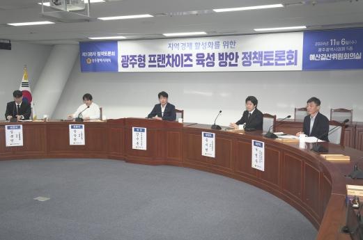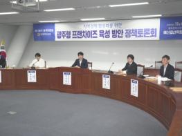 토론회 좌장을 맡은 강수훈 의원은 “이제 국가 간 경쟁이 아니라, 도시 간 경쟁의 시대다. 광주에서 직영점 1개로 시작해 본사를 두며 대한민국 전역으로, 세계 곳곳으로 뻗어가는 기업들이 많아질 때 광주의 위상은 높아진다. 광주형 프랜차이즈 육성이 중요한 이유다”며 토론회 개최 취지를 밝혔고, “특히 음식문화에 강점을 갖고 있는 광주가 다양한 먹거리 기업들을 육성할 방안을 고민하고, 국내외로 뻗어갈 프랜차이즈산업을 활성화시킬 시스템을 조속하게 마련하는 것이 필요하다”고 강조했다.