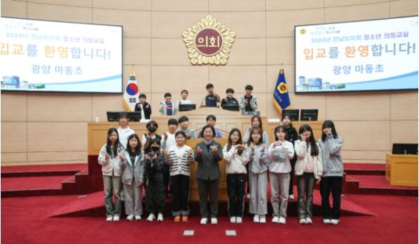 전라남도의회 박경미 도의원, ‘청소년 의회교실’ 참여한 광양 마동초 학생들 격려