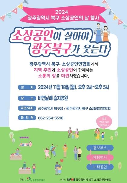 [중앙뉴스라인, 전은희기자] 광주시 북구가 오는 18일 오후 2시 용봉초록습지공원에서 ‘소상공인이 살아야 광주 북구가 웃는다’ 주제로 ‘소상공인의 날 행사’를 개최한다고 17일 밝혔다.