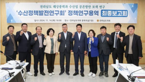 [중앙뉴스라인, 김민수기자] 전남도의회 의원 연구단체 ‘수산정책발전연구회(대표의원 최동익)’는 지난 11월 14일 전남도의회 중회의실에서 연구용역 최종보고회를 진행했다.