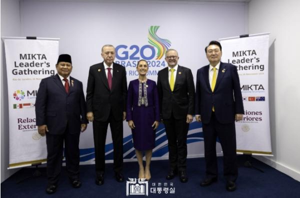 [중앙뉴스라인, 우제헌기자] G20 정상회의 참석을 위해 브라질 리우데자네이루를 방문 중인 윤석열 대통령은 11월 18일 범 지역 중견국 간 협의체인 믹타(MIKTA) 회원국 정상들과 만남을 가졌다.