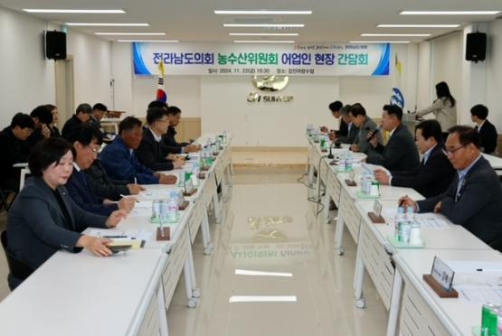 [중앙뉴스라인, 김민수기자] 전라남도의회 농수산위원회(위원장 더불어민주당 김문수, 신안1)는 11월 22일 강진 마량면에 소재한 강진군수협에서 김·전복 어업인들과 간담회를 통해 애로사항을 살피고 해결 방안을 함께 모색하는 시간을 가졌다.