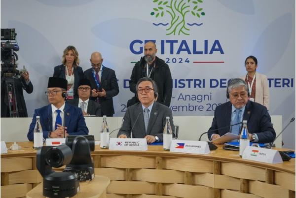 [중앙뉴스라인, 신기철기자] 조태열 외교장관은 11월 25일부터 26일까지 이탈리아 피우지에서 개최된 제2차 주요 7개국 협의체(G7) 외교장관회의에 참석하여, 러북 불법 군사협력을 포함한 인태지역 정세 및 외교안보 현안을 논의하고 한-G7간 협력 강화 방안 등을 논의했다.