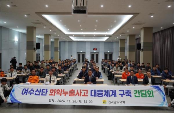 이날 간담회는, 최근 잇달아 발생하는 화학물질 누출사고에 대한 경각심 제고와 대응 역량을 강화하고, 겨울철 화재 등 안전사고 발생 위험이 커짐에 따라 전라남도의회와 전남소방본부 및 여수산단 관계자들이 한자리에 모여 대응 협력 방안을 모색하기 위해 마련되었다.