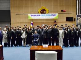 본회의에 앞서 조선대학교 김춘성 총장은 대학생 모의의회 의원들에게 격려의 말과 함께 수료증을 수여했으며, 서용규 부의장은 축사를 통해 “이번 모의의회에서 민주주의의 소중한 가치를 배우고 소통과 협력의 중요성을 깊이 체감하는 시간이 됐기를 바라며, 앞으로 광주 청년 정치의 미래를 이끌어 갈 여러분들을 응원한다.”라며 축하와 응원의 말을 전했다.