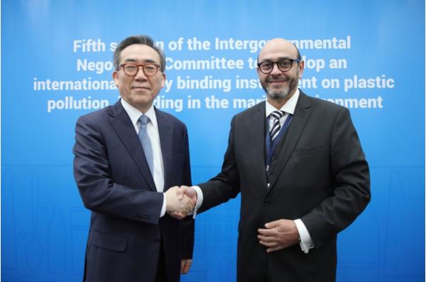 [중앙뉴스라인, 신기철기자] 플라스틱 오염 대응 국제협약을 성안하기 위한 제5차 정부간협상위원회(INC-5) 회의에 우리 정부 수석대표로 참여하고 있는 조태열 외교부장관은 협상 마지막 날인 12월 1일 유엔환경계획(UNEP) 사무총장, INC 의장 및 미국, 프랑스, 중국, 마이크로네시아 등 주요국 수석대표들을 만나 협상 마지막 쟁점들에 대해 논의하고 이견을 조율하기 위한 노력을 기울였다.