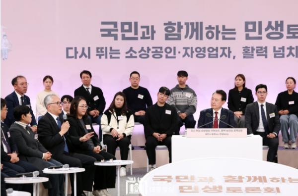 [중앙뉴스라인, 우제헌기자] 윤석열 대통령은 12월 2일 충청남도 공주시에서 ‘다시 뛰는 소상공인·자영업자, 활력 넘치는 골목상권’을 주제로 국정 후반기 첫 번째 ?국민과 함께하는 민생토론회?를 주재했다.