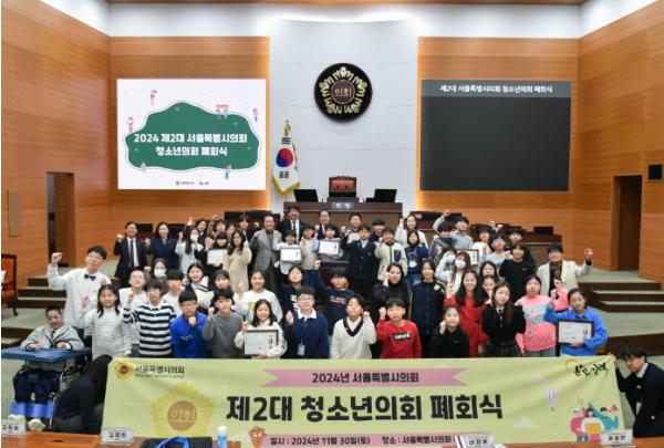 서울시의회는 제2대 청소년의회가 지난 11월 30일 열린 폐회식을 끝으로 막을 내렸다고 밝혔다. 폐회식에서는 58명 청소년 시의원의 활동 인증서 배부와 모범 청소년 시의원을 위한 표창 수여가 이뤄졌다.