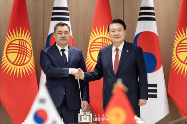 [중앙뉴스라인, 우제헌기자] 윤석열 대통령은 12월 3일 한국을 공식 방문 중인 ?사디르 자파로프(Sadyr Zhaparov)? 키르기즈공화국 대통령과 정상회담을 갖고, 양국 간 협력 증진 방안과 러북 군사협력을 비롯한 지역 및 국제 정세에 대해 폭넓은 의견을 교환했다.