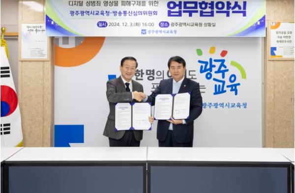 [중앙뉴스라인, 손기주기자] 이정선 광주시교육감은 3일 본청 상황실에서 방송통신심의위원회 류희림 위원장과 ‘딥페이크 등 디지털성범죄 영상물 피해구제 및 대응 관련 업무협약’을 체결했다.