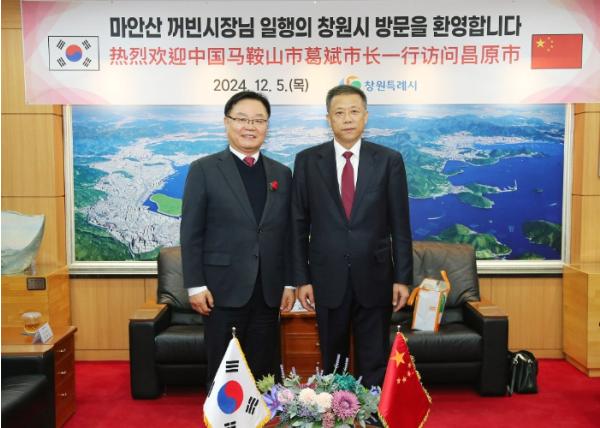 1994년 10월에 국제자매도시를 체결한 양 시는 오랜 기간 긴밀한 왕래를 추진했으나 코로나19로 인해 교류가 잠정 중단됐다. 지난 10월 자매도시 30주년을 기념하여 창원시가 마안산을 방문하여 교류를 재개하는 물꼬를 텄으며 이번 방문은 마안산시 답방 차원의 우호 방문으로 마안산 시장이 방문했다. 이번 마안산 시장의 방문은 2005년 이후 20년만이다.