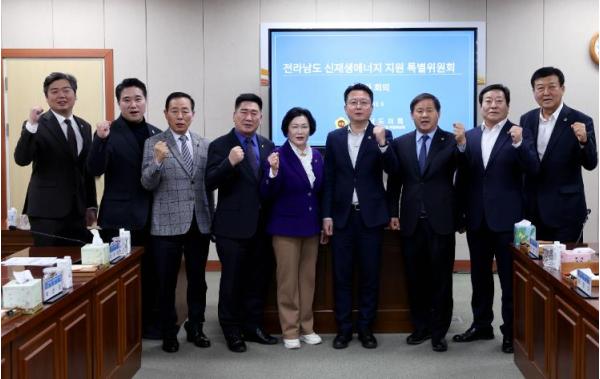 한편, 지난 5일 제376회 제2차 정례회 3차 본회의에서 통과된 전라남도 신재생에너지 지원 특별위원회는 최선국 의원이 구성 결의안을 대표 발의했으며 박원종(영광1), 김성일(해남1), 차영수(강진), 박선준(고흥2), 정길수(무안1), 최미숙(신안2), 신승철(영암1), 서대현(여수2), 김재철(보성1) 의원 10인으로 구성되어 전라남도 내 신재생에너지 산업의 경쟁력을 높이기 위한 다양한 논의와 정책 제안을 이어갈 예정이다.