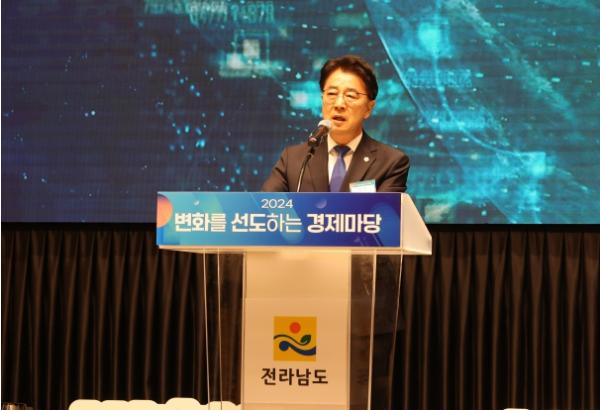 [중앙뉴스라인, 김민수기자] 전라남도의회 김태균 의장은 12월 10일 남악스카이웨딩컨벤션에서 개최된 ‘2024년 변화를 선도하는 경제마당’에 참석해 “기업간 네트워킹을 강화하여 지혜와 힘을 모아야 한다”고 밝혔다.