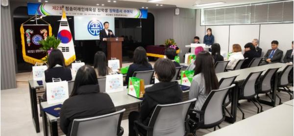 ‘청송 미래 인재 육성 장학금’은 청송학원 숭덕고등학교와 정원장학복지재단을 설립한 청송 김길수 선생의 인재 양성에 대한 높은 뜻을 기리고, 미래를 선도할 광주지역 중학생 인재를 육성하기 위해 지난해 김 이사장이 신설했다.