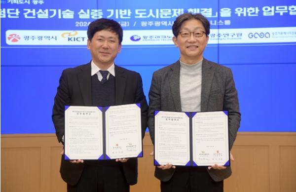 협약에 따라 한국건설기술연구원은 보유 중인 건설분야 첨단기술을 활용한 실증에 나서 광주 도시문제 해결 등 정책과제를 수행한다.