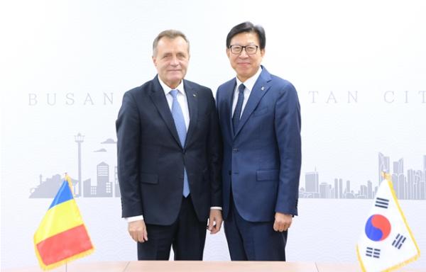 2022년 12월 22일에는 이온-마르첼 치올라쿠 루마니아 하원의장, 니콜라에-이오넬 치우커 총리를 비롯한 부총리, 국방부 장관, 경제부 장관, 교육부 장관 등 루마니아 대표단이 부산을 방문해, 박 시장과 양국 간 협력에 대한 논의를 한 바 있다.
