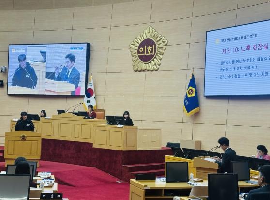 특히 전남조리과학고등학교 이지호 학생이 지역학생연합회를 대표해 제안한 ‘학생 건강권 확보를 위한 화장실 개선’은 제6기 전남학생의회 하반기 권역별 협의회에서 다뤄진 주제로, 본회의장에서 직접 대표 발의할 수 있도록 초대해 의견을 청취했다.