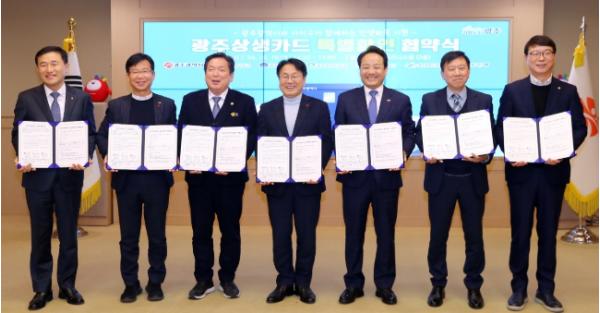 광주광역시는 18일 시청 비즈니스룸에서 5개 자치구, 광주은행과 함께 ‘광주상생카드 특별할인 공동추진 업무협약’을 체결했다.