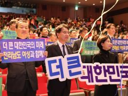 ‘더 큰 대한민국의 미래, 전라남도 여성과 함께’라는 주제로 열린 이날 여성대회에는 김영록 지사와 전남도의회 이광일 부의장, 도의원, 도?시군 여성단체 회원 등 1,000여 명이 참석한 가운데 식전공연, 여성단체 활동영상 상영에 이어 유공자 표창, 결의문 채택, 퍼포먼스 순으로 진행됐다.