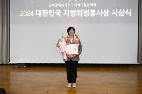 [중앙뉴스라인, 김효현기자] 김은정 광산구의원(진보당, 첨단1·2동)이 23일 광주광역시자치구의회의장협의회로부터 2024년 하반기 ‘지방의정봉사상’을 수상했다.