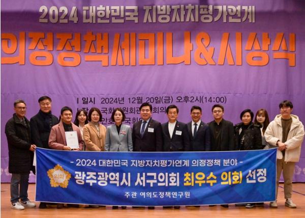광주광역시 서구의회, 대한민국 지방자치평가 의정정책 분야 최우수 의정단체 선정