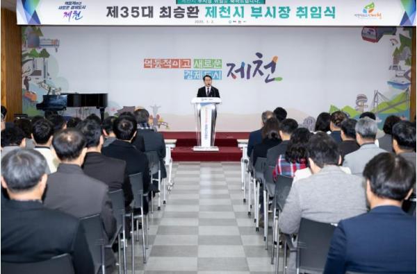 [중앙뉴스라인, 한성영기자] 제천시는 지난 2일 제천시청 5층 청풍호실에서 2025년 을사년 시무식에 이어 제35대 최승환 부시장 취임식을 개최했다.