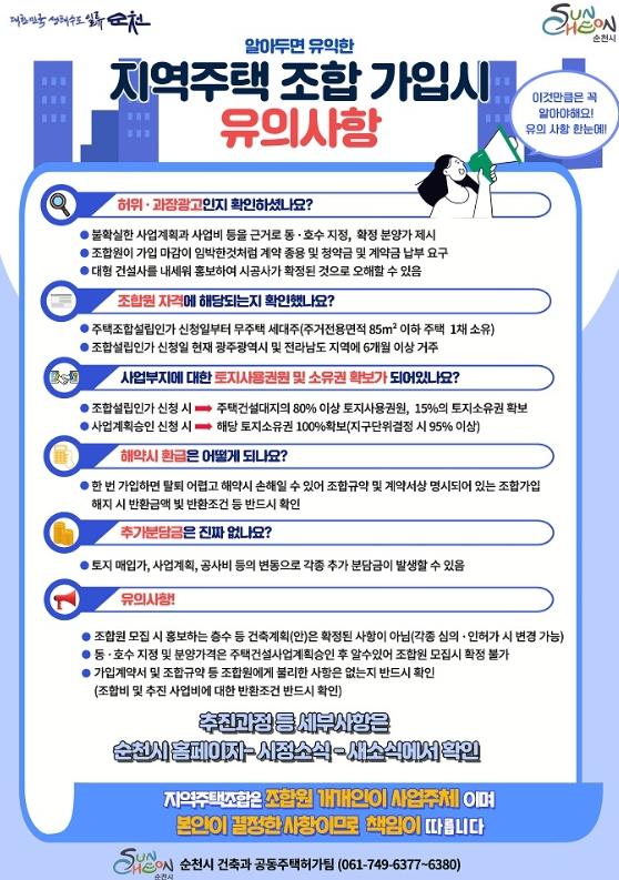 순천시, 지역주택조합 가입 시 시민 피해 예방을 위한 주의 당부