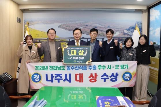 전라남도가 주관한 ‘농수산식품 수출 평가’에서는 수출용 나주배 신품종 개발과 수출 전문단지 활성화를 통한 배 수출 전략 품목화에 성공하는 등 혁신적인 수출 지원정책으로 높은 점수를 얻은 결과 2023년 최우수상에 이어 올해 대상을 수상했다.