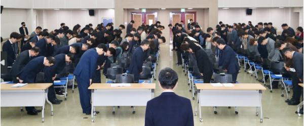 이날 시무식은 김대중 교육감을 비롯한 간부진과 1월 1일 자 본청 전입 직원 등이 참석한 가운데 진행됐으며, 현장에 참석하지 못한 직원들은 각자의 사무실에서 영상 시스템을 통해 시무식에 함께했다.