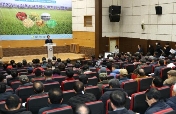 [중앙뉴스라인, 전은희기자] 강진군은 지난 6일 군 농업기술센터 대강당에서 마을 이장 및 농업인 단체 등 1차 산업 관계자 160여 명이 참석한 가운데 ‘2025년 농림축수산분야 지원사업 설명회’를 개최했다.