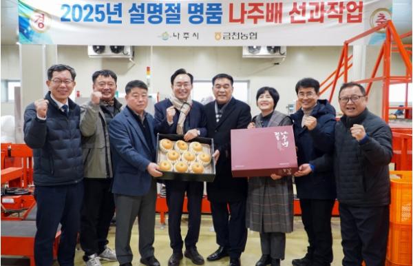 생장조절제 무처리(무GA), 당도 12브릭스(brix) 이상, 색감, 신선도 등을 기준에 따라 엄격히 선별한 배로 설명절 전국 대형 유통 마트, 농협, 나주몰(온라인 쇼핑몰) 등을 통해 총 35톤을 출하할 예정이다.