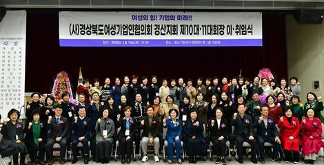 (사)경상북도여성기업인협의회 경산지회는 14일 중소벤처기업진흥공단 대구경북연수원 대강당에서 주요 내빈과 회원 120여 명이 참석한 가운데 제10대·11대 회장 이·취임식을 개최했다.