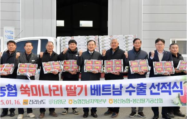 담양군은 지난 16일 봉산농협 산지유통센터에서 첫 선적식을 열고 딸기 256kg을 베트남으로 수출했다고 밝혔다.