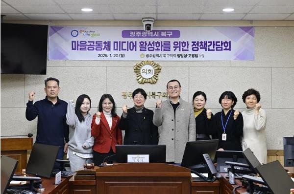 [중앙뉴스라인, 김효현기자] 광주 북구의회 정달성 의원(더불어민주당, 용봉·매곡·삼각·일곡동)과 고영임 의원(더불어민주당, 중흥1·중흥·신안·임·중앙동)이 지난 20일 ‘마을공동체 미디어 활성화를 위한 정책간담회’를 개최했다고 밝혔다.