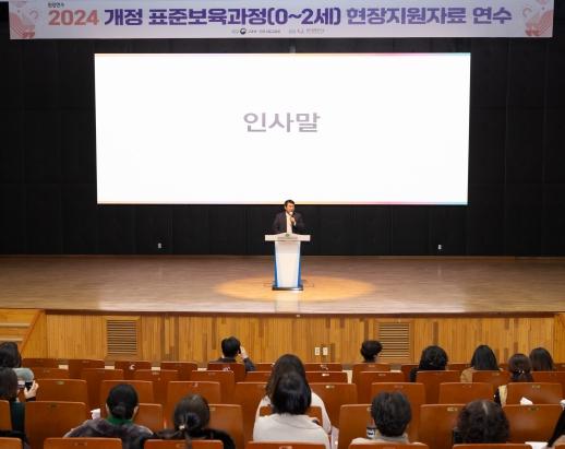 [중앙뉴스라인, 전은희기자] 광주시교육청은 21일 광주교육연수원에서 공·사립 유치원과 어린이집 원장 450여 명을 대상으로 ‘2024 개정 표준보육과정(0~2세) 원장 연수’를 실시했다.