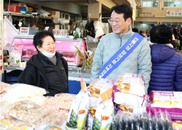 [중앙뉴스라인, 전은희기자] 강진원 강진군수 내외가 지난 24일 설 명절을 앞두고 훈훈한 명절 분위기를 조성하고, 관내 전통시장 상인들을 격려하기 위해 강진읍시장을 방문했다.