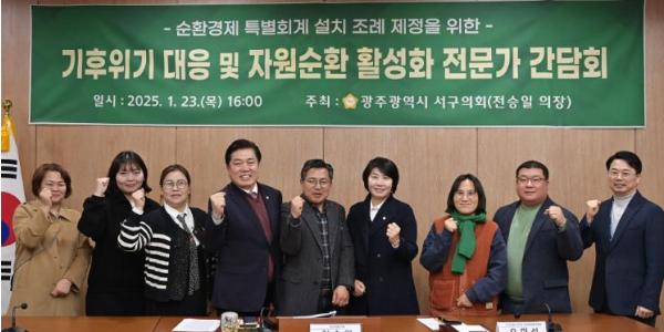 전승일 광주 서구의회 의장 주관으로 열린 이번 간담회는 '순환경제 특별회계 설치 및 운용 조례' 제정에 앞서 관계자들의 의견을 수렴하기 위해 마련됐다.