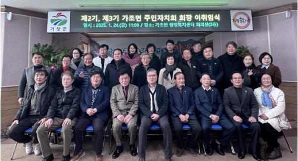 [중앙뉴스라인, 한성영기자] 거창군 가조면는 24일 면사무소 2층 회의실에서 이장협의회장, 노인회장, 상인회장, 체육회장 등 기관단체장과 주민자치회원 등 100여 명이 참석한 가운데 주민자치회장 이·취임식을 성황리에 개최했다고 밝혔다.