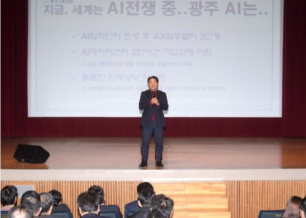 강기정 광주시장은 “세계의 인공지능(AI)은 초 단위로 진화하고 있다. 빠른 속도로 국내 유일 국가AI데이터센터가 있는 광주에 초거대AI를 집적시켜 대한민국의 성장판을 열어야 한다”며 “CES에서 성과를 되돌아보는 것은 광주시 전 공직자는 협업을 통해 AI 산업성장에 총력을 다해야 한다. 우리의 힘으로 광주AI산업은 반드시 성공할 것이다. 특정 부서의 업무가 아니라 우리 모두의 미래를 여는 먹거리라고 생각해 달라”고 강조했다.